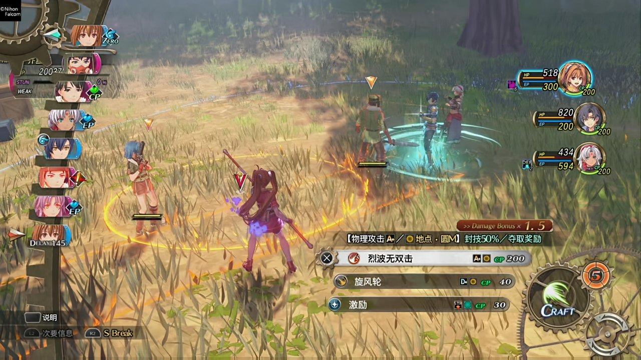 不用手忙脚乱记一堆按键,选技能、用道具都清清楚楚,需根据敌我行动顺序与站位选择战技或魔法,高阶技能伴随较长僵直时间,需谨慎规划战术,