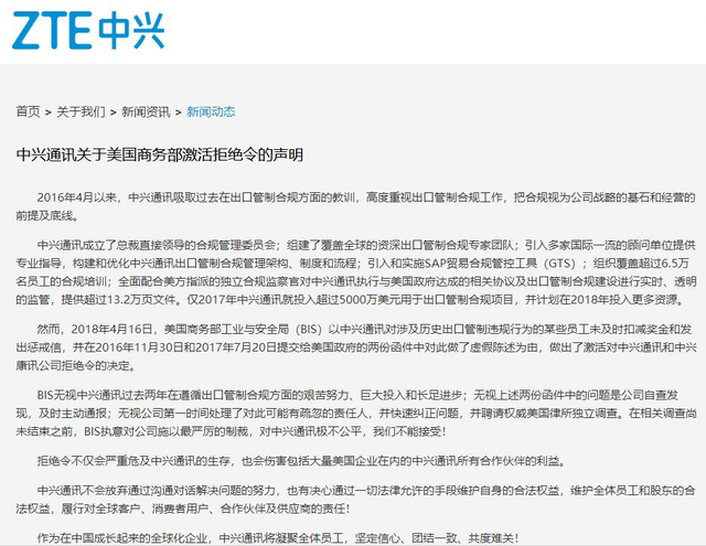 2018年,在美国重启对中兴的制裁条例之后,中兴通讯高管借媒体平台对合作商和消费者表示,美国的芯片断供将会让中兴进入休克状态。尽管后来的中兴通讯与美国达成了和解,但其和解协议对中兴来说无异于釜底抽薪,上交罚款、更换管理层,导致中兴的消费者业务板块全面崩盘。